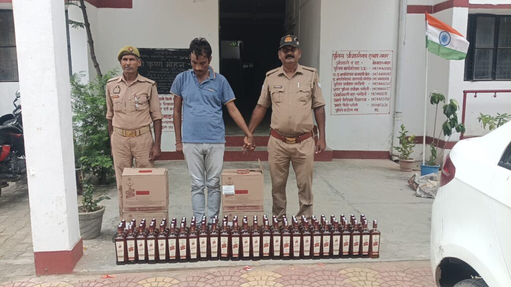 इस दौरान एक सफेद टाटा जेस्ट कार (नंबर UP 65 CR 3115) को रोककर तलाशी ली गई। तलाशी में रॉयल स्टेज अंग्रेजी शराब की 4 पेटी व 72 खुली बोतलें (कुल 120 बोतल, प्रत्येक 750 एमएल, कुल मात्रा 90 लीटर) बरामद हुईं।