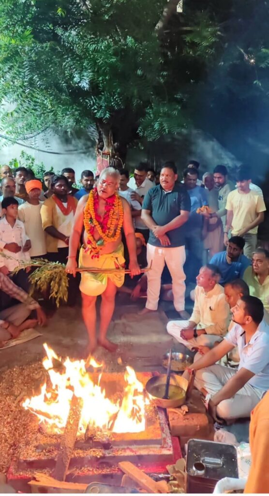 पूजा कार्यक्रम की शुरुआत दर्शनीय मोलई बाबा और रजिंदर बाबा द्वारा की गई, जिन्होंने मां काली की मूर्ति के साथ नगर का भ्रमण किया और चारों दिशाओं में पूजन-अर्चन कर नगर में सुख-शांति की प्रार्थना की। देर शाम यह यात्रा स्टेशन रोड स्थित मां काली मंदिर पर समाप्त हुई, जहां अखंड हवन-पूजन का आयोजन किया गया।