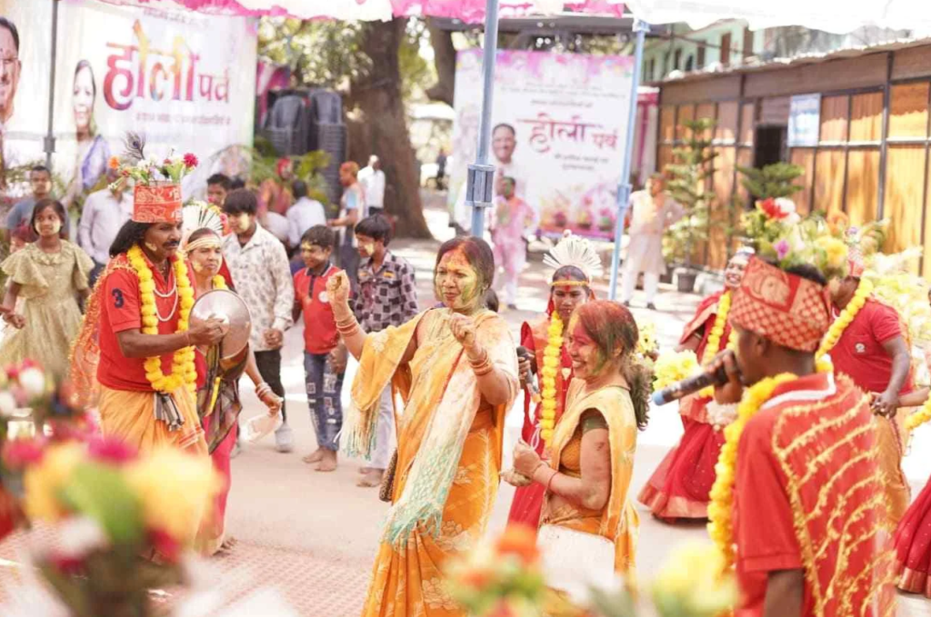 कार्यक्रम की शुरुआत पारंपरिक रीति-रिवाजों के साथ हुई। इसके बाद आयोजित सांस्कृतिक कार्यक्रमों ने माहौल को और भी जीवंत बना दिया। स्थानीय कलाकारों ने फाग गीत, लोकनृत्य और रंगारंग प्रस्तुतियों के माध्यम से उपस्थित लोगों का मन मोह लिया। ढोल-नगाड़ों की थाप पर लोग भी झूमते नजर आए और पूरे परिसर में उत्सव का माहौल बन गया।