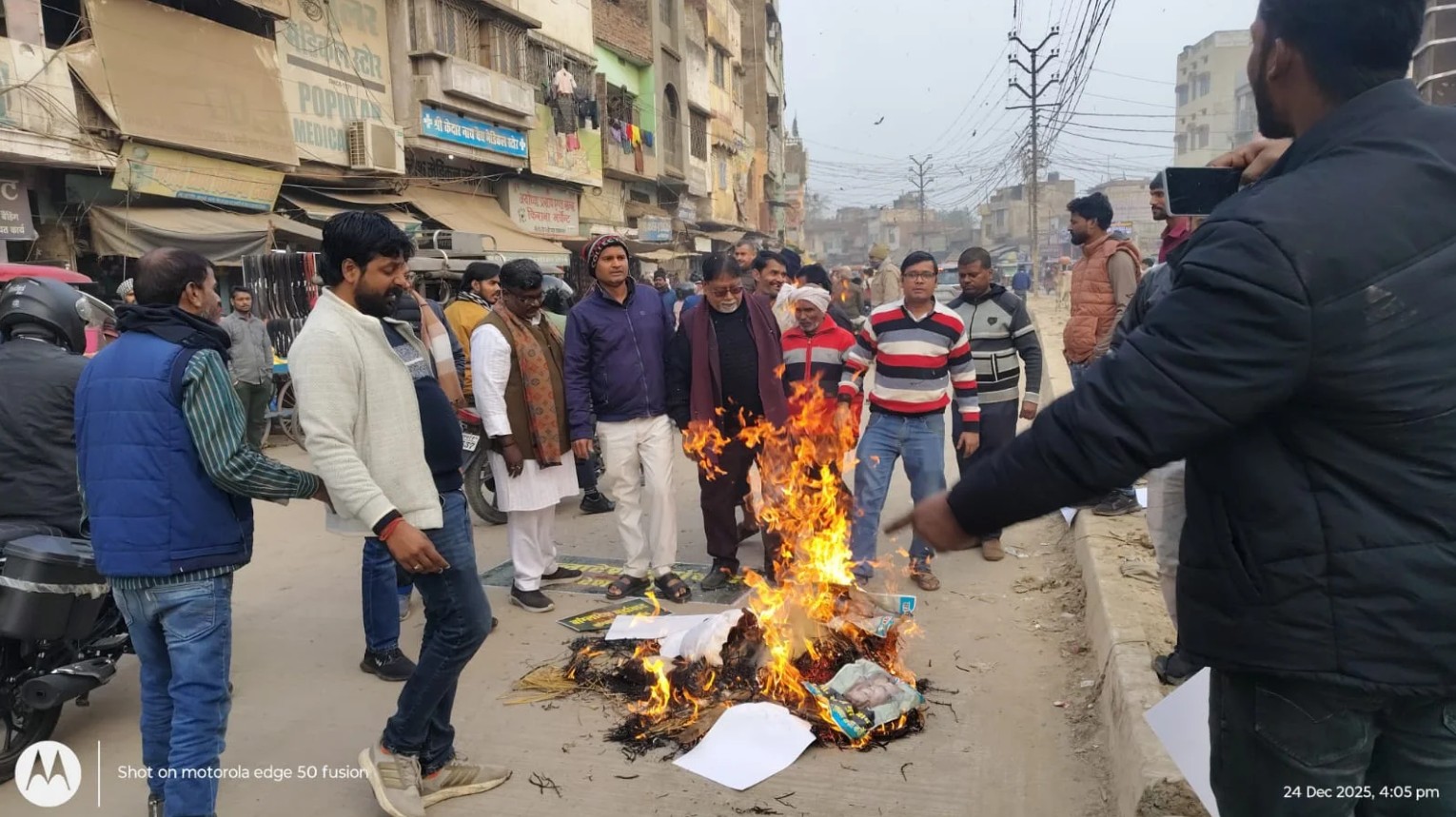 चंदौली| बांग्लादेश में अल्पसंख्यक समुदाय पर हो रहे कथित अत्याचार और दीपू दास की हत्या के विरोध में शुक्रवार को चंदौली जिले के डीडीयू नगर में जबरदस्त आक्रोश देखने को मिला। राष्ट्रीय हिन्दू फ्रंट से जुड़े कार्यकर्ताओं ने सड़कों पर उतरकर बांग्लादेश सरकार के खिलाफ विरोध प्रदर्शन किया और जीटी रोड पर जोरदार जुलूस निकाला।