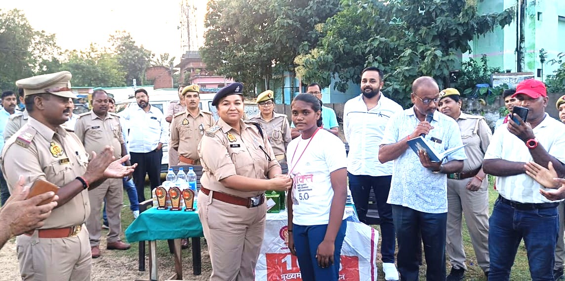 चंदौली। बलुआ स्थित बाल्मीकि इंटर कॉलेज के मैदान पर मंगलवार की शाम मिशन शक्ति अभियान के तहत बालिकाओं को जागरूक करने के उद्देश्य से बलुआ पुलिस और मिशन शक्ति टीम की ओर से दौड़ प्रतियोगिता का आयोजन किया गया।