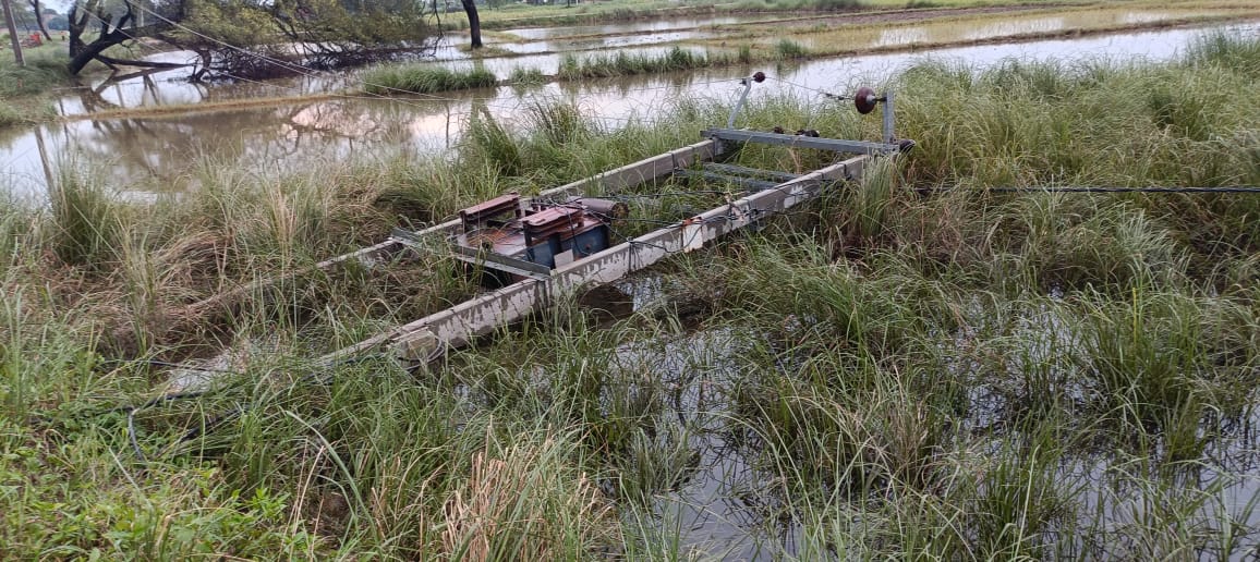 - ट्रांसफार्मर और खंभा पानी में घिर गया था।
